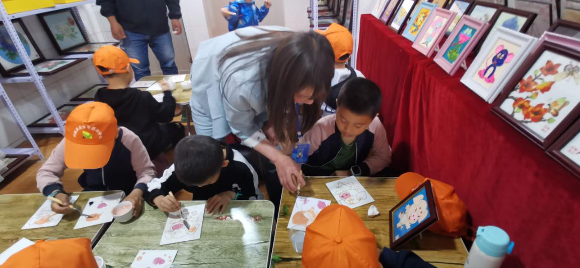 參加此次研學(xué)活動的師生共計180余人,小朋友們在我公司講解員的帶領(lǐng)下興致勃勃的參觀了鄭氏砂畫,了解了鄭氏砂藝“非遺”文化的發(fā)展歷程、工藝技術(shù)和傳承意義,觀看了砂畫制作解析視頻,最后進(jìn)行了砂畫的實(shí)際操作。