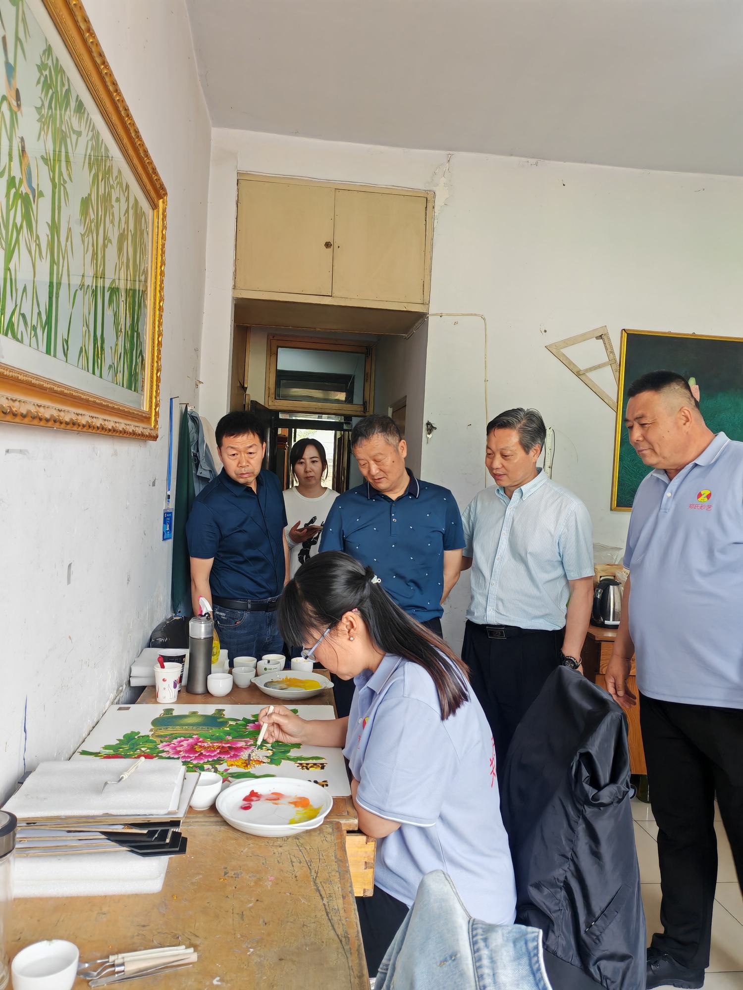 2023年5月29日,承德市委統(tǒng)戰(zhàn)部副部長董鵬普,科長劉海宸,興隆縣委常委、統(tǒng)戰(zhàn)部部長強(qiáng)占坡,興隆縣委統(tǒng)戰(zhàn)部常務(wù)副部長楊榮保、辦公室主任喬穎等領(lǐng)導(dǎo)一行蒞臨興隆縣鄭氏砂藝文化有限公司,就新階統(tǒng)戰(zhàn)工作實(shí)踐創(chuàng)新基地鄭氏砂藝藝術(shù)研究所的發(fā)展情況進(jìn)行調(diào)研考察。