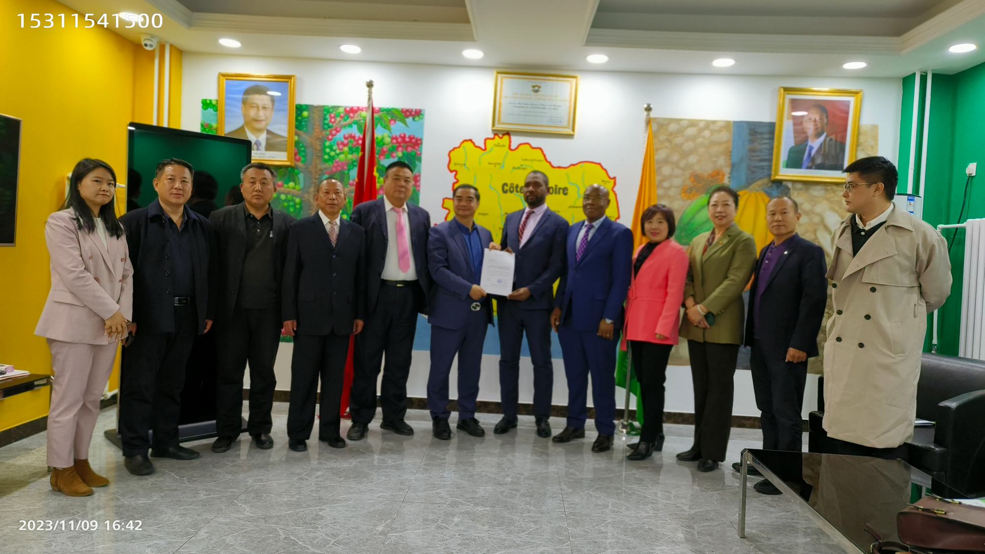 2023年11月9日,應(yīng)中名聯(lián)邀請(qǐng)推薦,鄭氏砂藝董事長(zhǎng)鄭鐵軍參加了在科特迪瓦駐華大使館舉辦的中科國(guó)際貿(mào)易、文化交流會(huì),會(huì)上大使館與中名聯(lián)就雙方國(guó)際貿(mào)易、文化交流達(dá)成合作方案,大使館特授權(quán)中名聯(lián)集團(tuán)城市運(yùn)營(yíng)中心拓展雙方的合作!