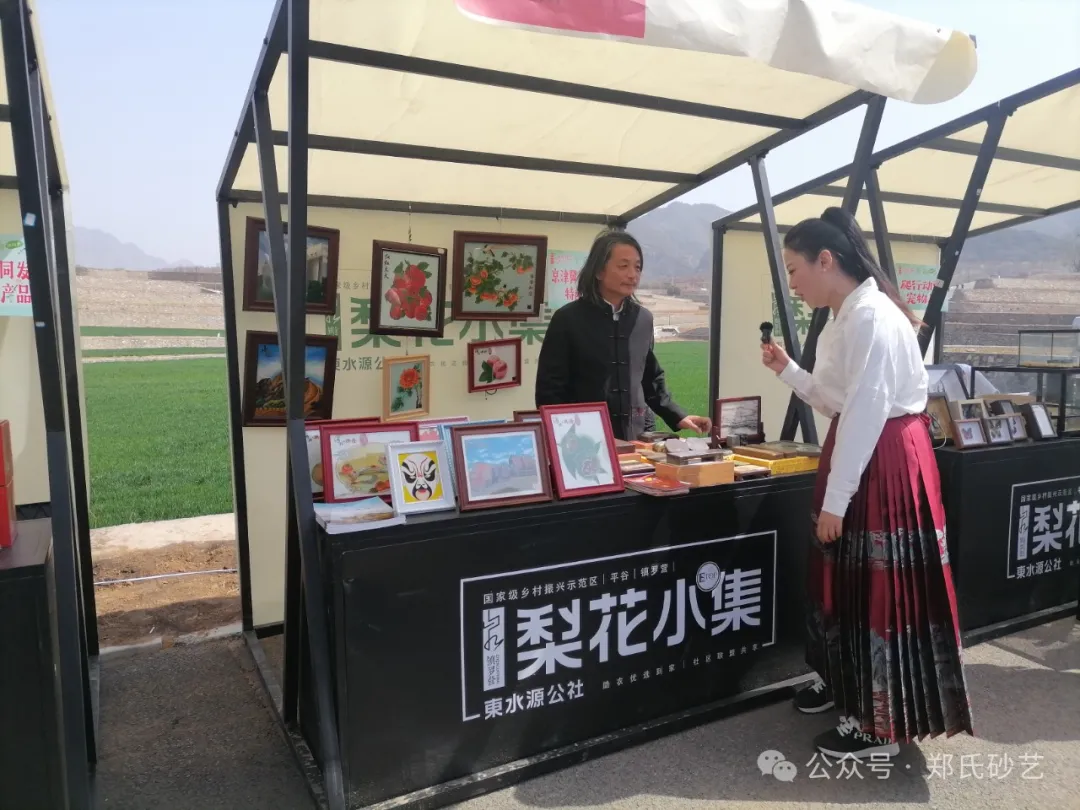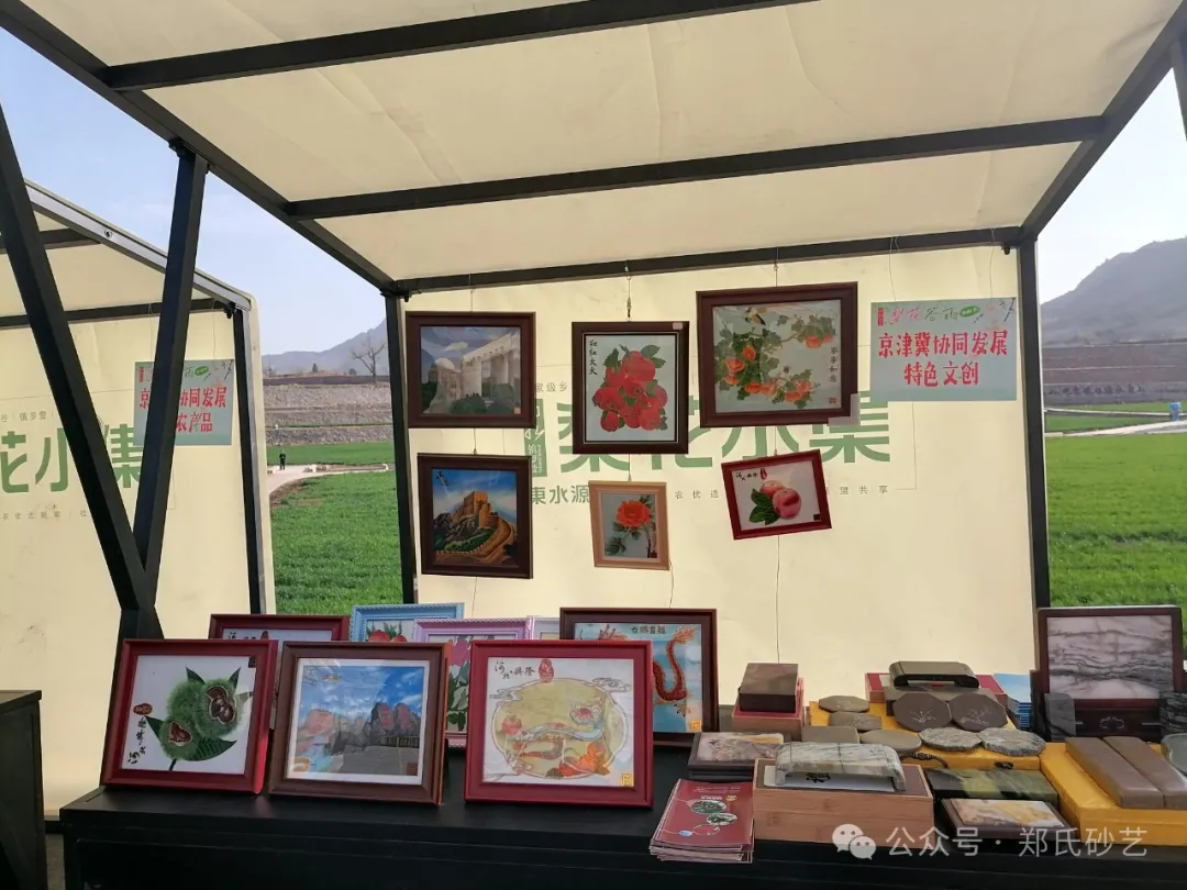 “忽如一夜春風(fēng)來,千樹萬樹梨花開” 春風(fēng)正好,花開有期。2024年4月8日上午,北京市平谷區(qū)鎮(zhèn)羅營鎮(zhèn)人民政府舉辦的以“千載梨花頌、花漾鎮(zhèn)羅營”為主題的梨花谷雨文化節(jié)活動拉開帷幕,為營造“傳統(tǒng)文化+梨花美景”的活動氛圍,鄭氏砂藝受邀參加了此次活動,并精心挑選了20余幅精品砂畫參加展出,展出作品涵蓋了紅火(山楂)、吉利(板栗)、平安(蘋果)、天文臺、興隆山風(fēng)光等興隆地區(qū)眾多的特色產(chǎn)品和獨特景點,展出期間,鄭氏砂藝(畫)作品以其材質(zhì)的新穎獨特,制作手法的精妙絕倫,畫面內(nèi)容的豐富多彩,吸引了眾多游客駐足觀賞,成為了自媒體和游客的拍攝打卡地。鄭氏砂藝用自己的藝術(shù)方式充分地向北京人們展示了興隆的文化特色,同時為平谷“梨花節(jié)”增添了濃厚的文化氣息。