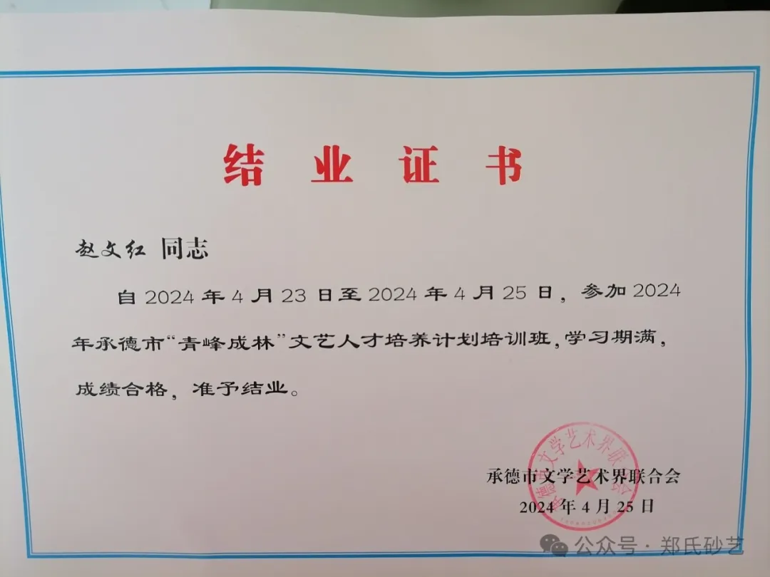 鄭氏砂藝技師入圍2024年承德市“青峰成林”文藝人才培養(yǎng)計劃