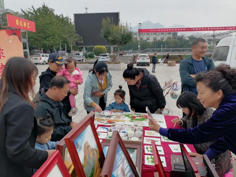在展覽現(xiàn)場,鄭氏砂藝展區(qū)人頭攢動,熱鬧非凡。一系列精心創(chuàng)作的砂藝藝術(shù)品,如《國泰民安》《沿著社會主義大道奔前方》《興隆山》《霧靈山》《天文臺》及《紅紅火火》等,吸引了眾多觀眾的目光。這些作品不僅展現(xiàn)了鄭氏砂藝精湛的制作工藝和獨特的藝術(shù)風(fēng)格,更蘊含了對祖國繁榮昌盛、人民幸福安康的美好祝愿。鄭氏砂藝的展品憑借其獨特的藝術(shù)魅力和深刻的主題內(nèi)涵,贏得了廣大父老鄉(xiāng)親的喜愛和贊賞。觀眾們紛紛駐足觀賞,拍照留念,更有不少人表示被這些作品深深打動,感受到了濃厚的愛國情懷和藝術(shù)氛圍。