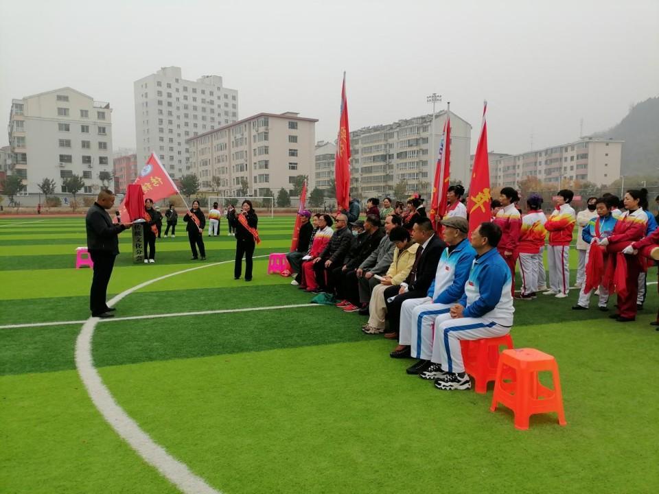縣老科協(xié)會(huì)長(zhǎng)張江同分會(huì)會(huì)長(zhǎng)鄭鐵軍舉行接牌和授旗儀式
