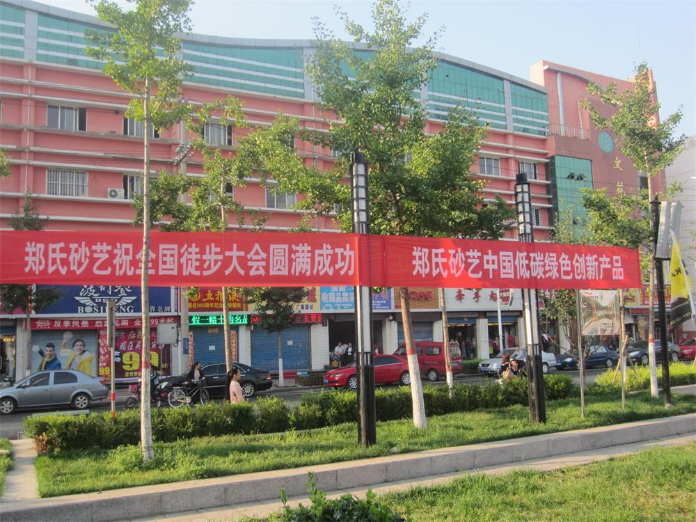 2014年9月5日,2014中國(guó)興隆霧靈山全國(guó)徒步大會(huì)在興隆縣城中心廣場(chǎng)舉行開(kāi)幕儀式。國(guó)家體育總局領(lǐng)導(dǎo)、承德市韓副市長(zhǎng)、市體育局局長(zhǎng)、興隆縣委書(shū)記、紀(jì)委書(shū)記、縣長(zhǎng)、人大主任、宣傳部長(zhǎng)等領(lǐng)導(dǎo)出席開(kāi)幕儀式。來(lái)自全國(guó)各地的200多名徒步愛(ài)好者和包括人民日?qǐng)?bào)等20多家新聞媒體參加了開(kāi)幕儀式。鄭氏砂藝作為徒步大會(huì)的指定產(chǎn)品,組織全體員工在廣場(chǎng)進(jìn)行了產(chǎn)品展示和宣傳活動(dòng),懸掛橫幅5副,展示作品近百件,有力配合了徒步大會(huì)的舉行,也再一次提高了鄭氏砂藝的社會(huì)知名度。