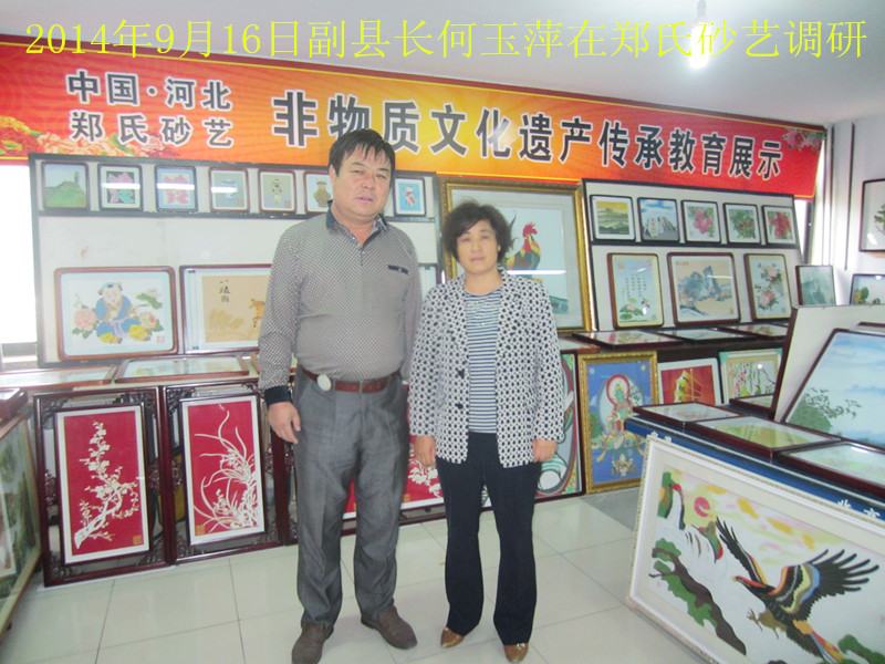 2014年9月16日,副縣長何玉萍來到鄭氏砂藝公司就我縣文化產(chǎn)業(yè)發(fā)展進(jìn)行考察調(diào)研。何縣長參觀了鄭氏砂藝研發(fā)室、展廳和公司企業(yè)文化墻,聽取了公司總經(jīng)理鄭鐵軍的工作匯報(bào)。何縣長對(duì)鄭氏砂藝近幾年來所取得的成績給予充分肯定,并希望鄭氏砂藝一定要瞄準(zhǔn)國內(nèi)外兩個(gè)市場,抓住生產(chǎn)研發(fā)與市場銷售兩個(gè)主要環(huán)節(jié),搞好科技創(chuàng)新,千方百計(jì)提升產(chǎn)品質(zhì)量,帶動(dòng)我縣文化產(chǎn)業(yè)的繁榮發(fā)展。